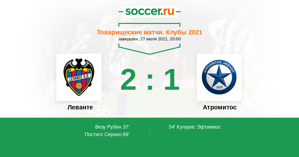 Леванте - Атромитос: обзор матча 27 июля 2021