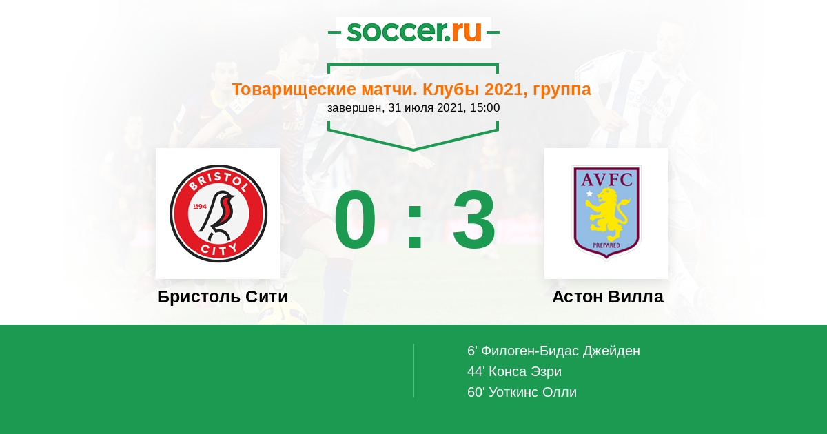 Бристоль Сити - Астон Вилла: обзор матча 31 июля 2021