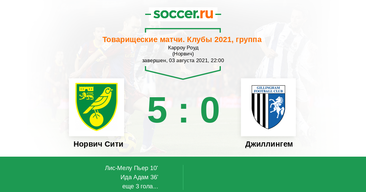 Норвич Сити - Джиллингем: обзор матча 3 августа 2021