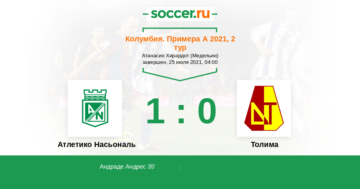 Атлетико Насьональ - Толима: обзор матча 25 июля 2021