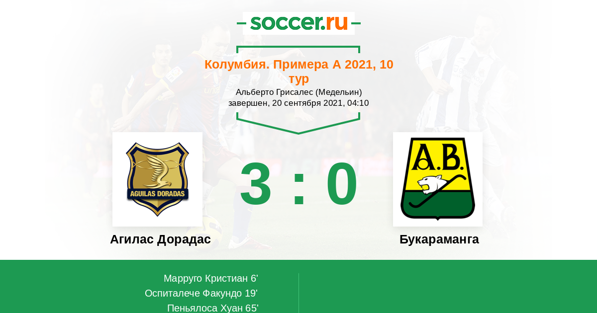 Агилас Дорадас - Букараманга: обзор матча 20 сентября 2021