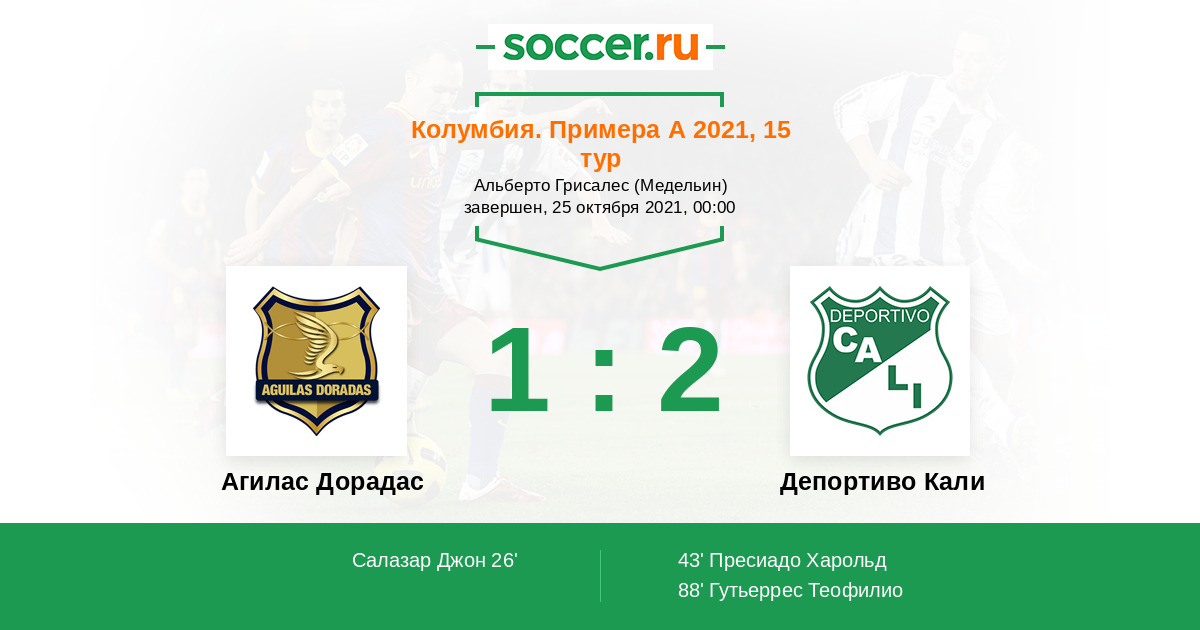 Агилас Дорадас - Депортиво Кали: обзор матча 25 октября 2021