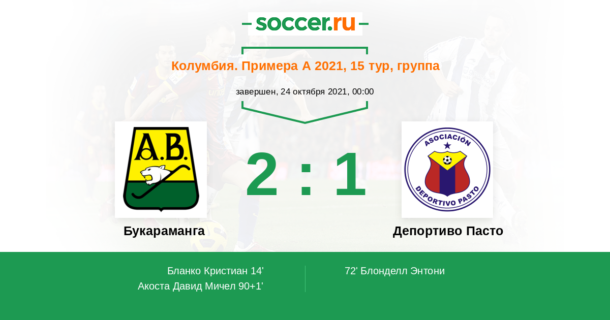 Букараманга - Депортиво Пасто: обзор матча 24 октября 2021