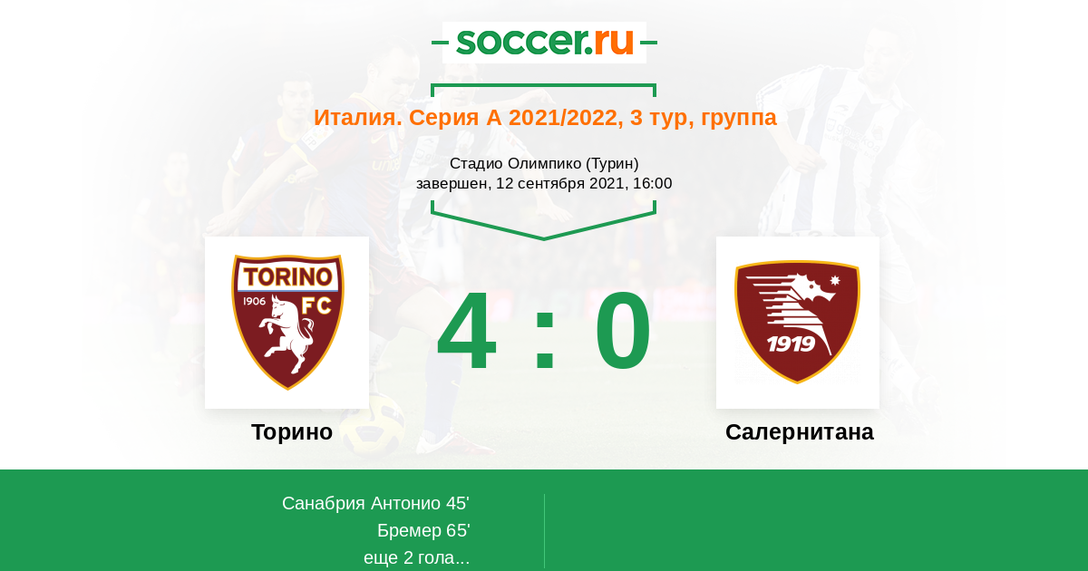 Торино - Салернитана: обзор матча 12 сентября 2021