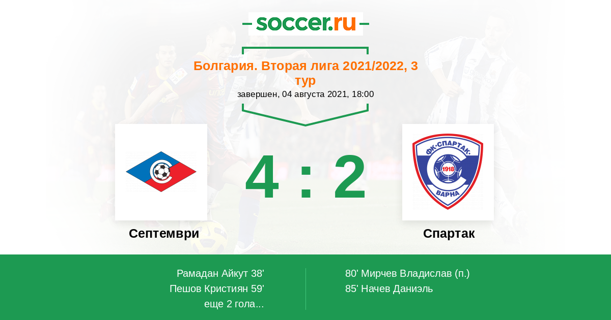 Септември - Спартак: обзор матча 4 августа 2021