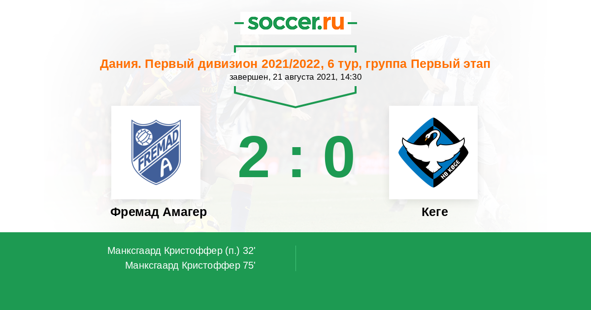 Фремад Амагер - Кеге: обзор матча 21 августа 2021
