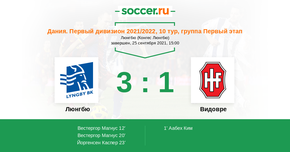 Люнгбю - Видовре: обзор матча 25 сентября 2021