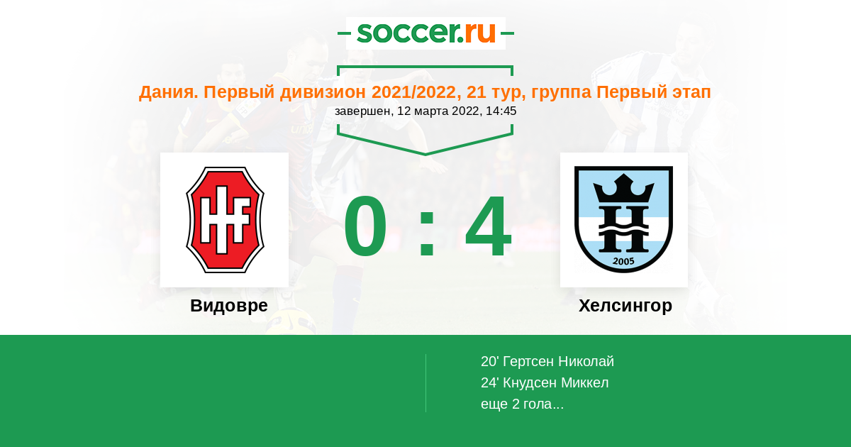 Видовре - Хелсингор: обзор матча 12 марта 2022