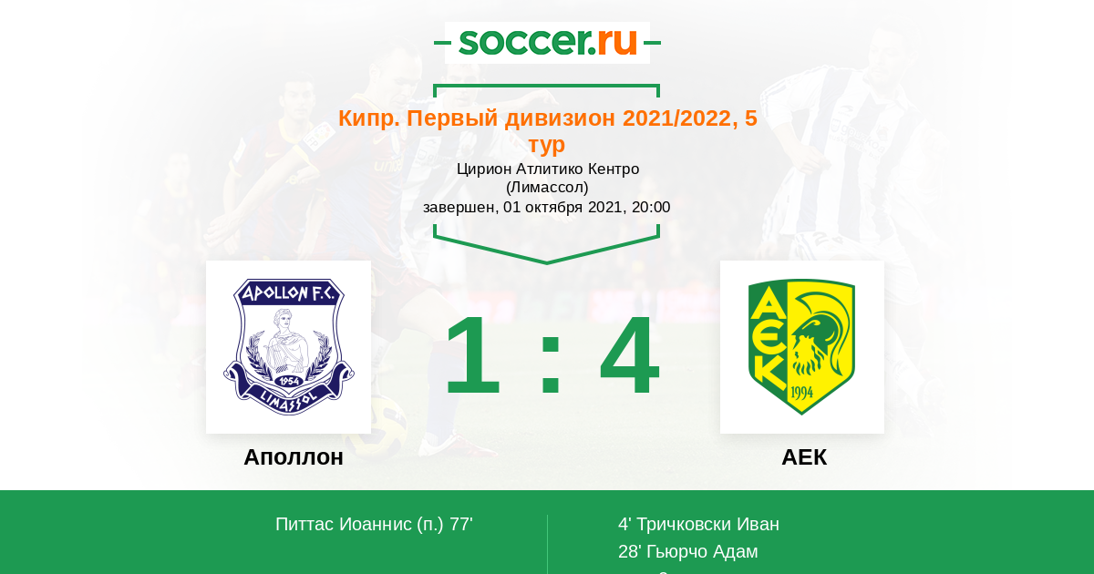 Аполлон - АЕК: обзор матча 1 октября 2021