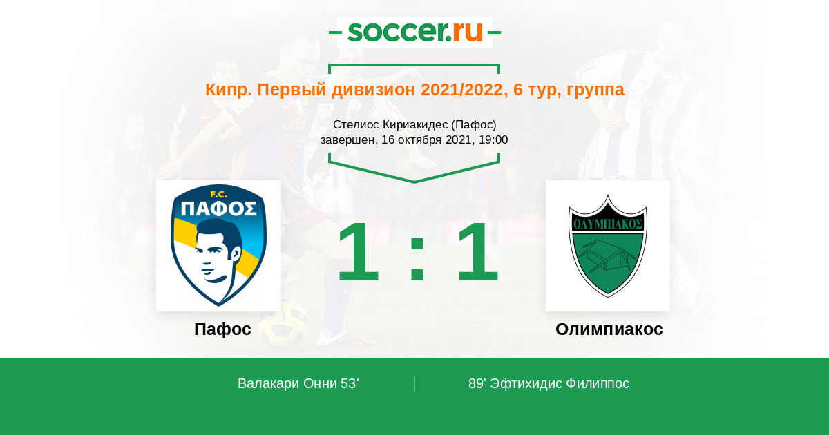 Пафос - Олимпиакос: обзор матча 16 октября 2021