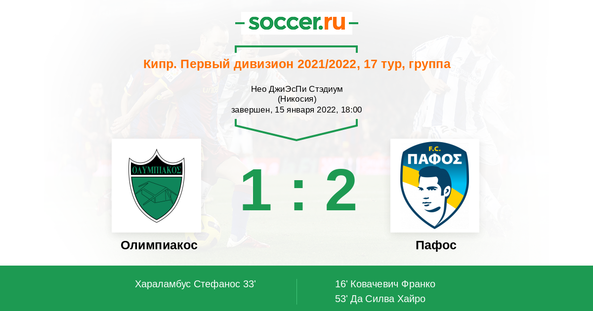 Олимпиакос - Пафос: обзор матча 15 января 2022