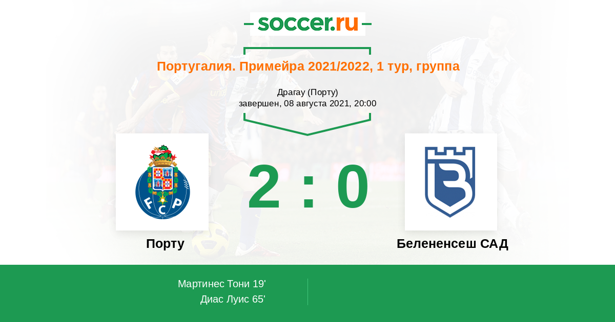 Порту провёл фантастическую предсезогку. Команда просто летала по полю. А соперники то не были из разряда проходимых. Против Белененсиша Порту исторически играет результативно. Думаю и сегодня будет далеко не скупая на голы игра