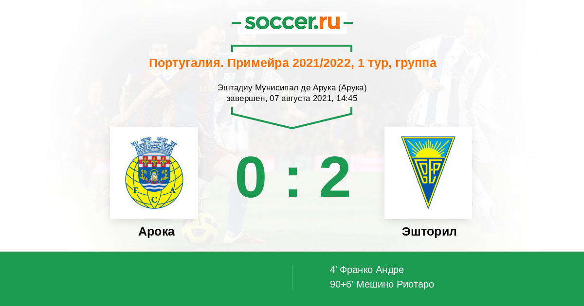 Арока - Эшторил: обзор матча 7 августа 2021