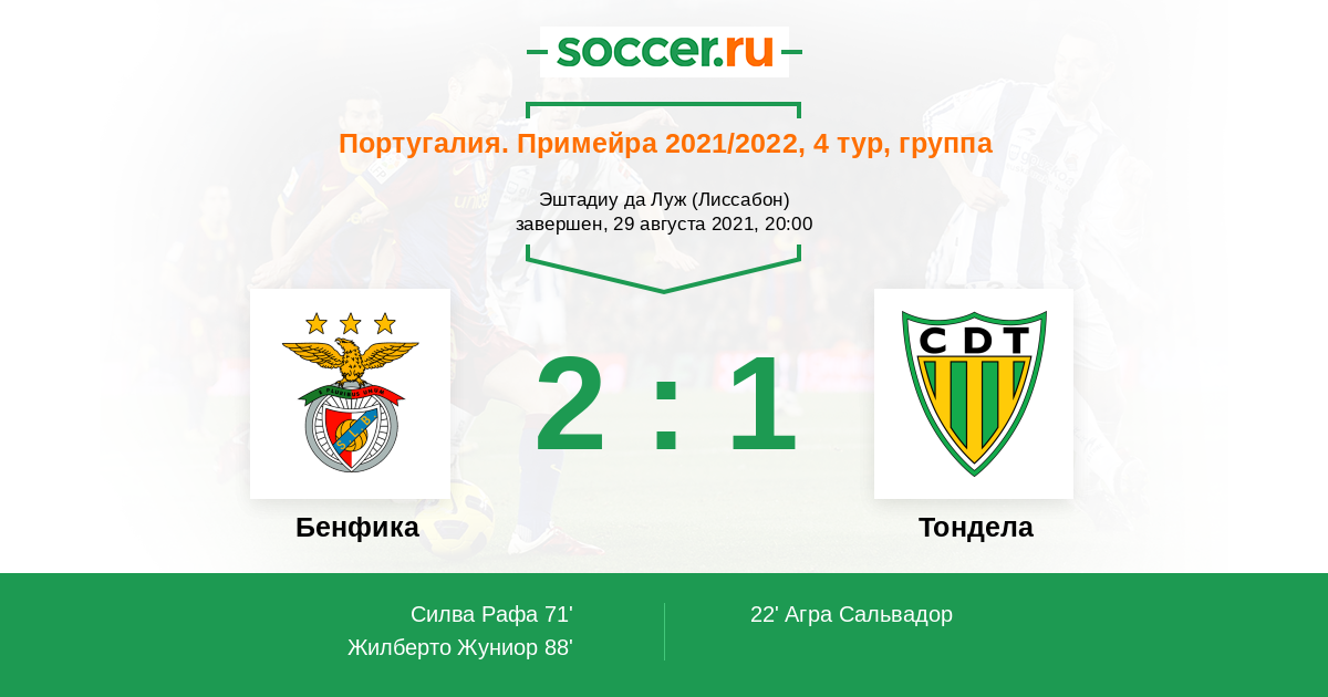 Бенфика - Тондела: обзор матча 29 августа 2021