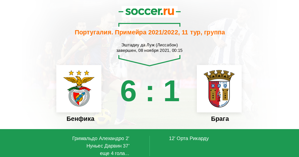 Бенфика - Брага: обзор матча 8 ноября 2021