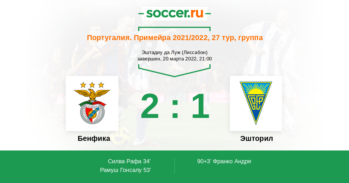 Бенфика - Эшторил: обзор матча 20 марта 2022