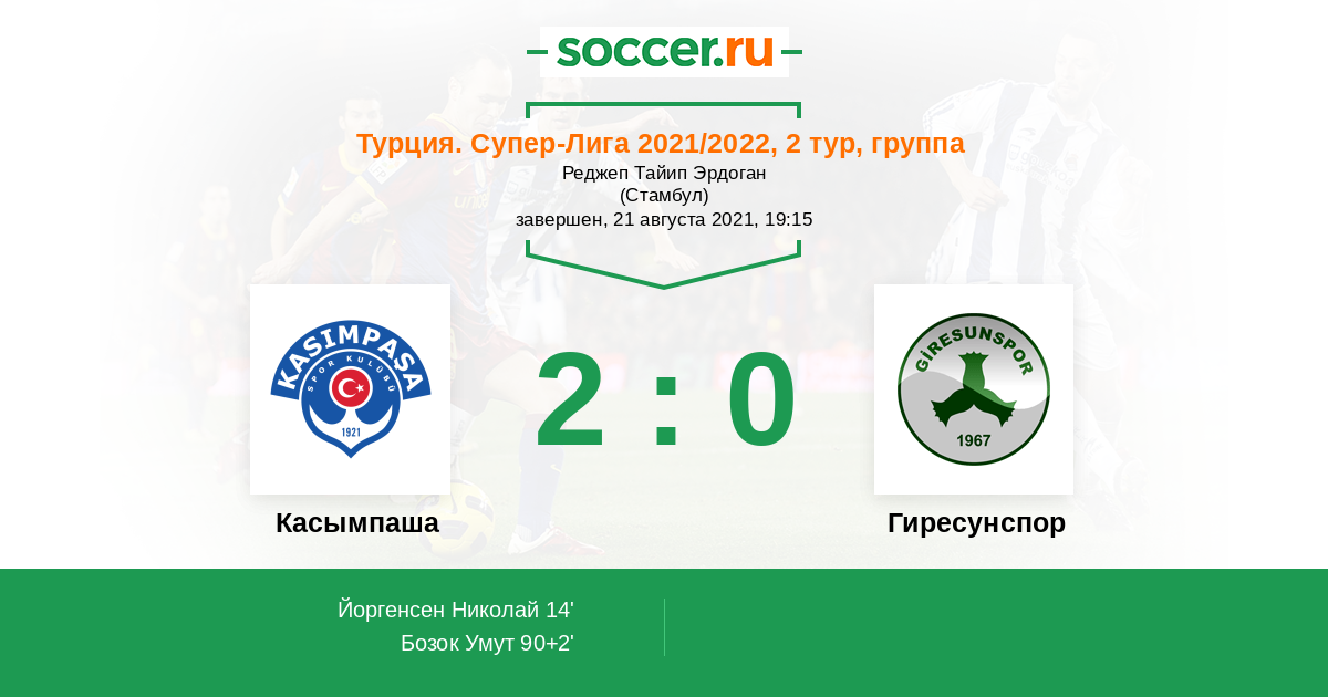Касымпаша - Гиресунспор: обзор матча 21 августа 2021