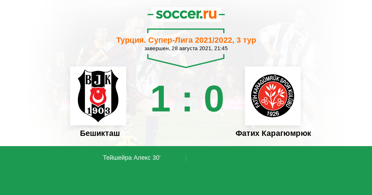 Бешикташ - Фатих Карагюмрюк: обзор матча 28 августа 2021