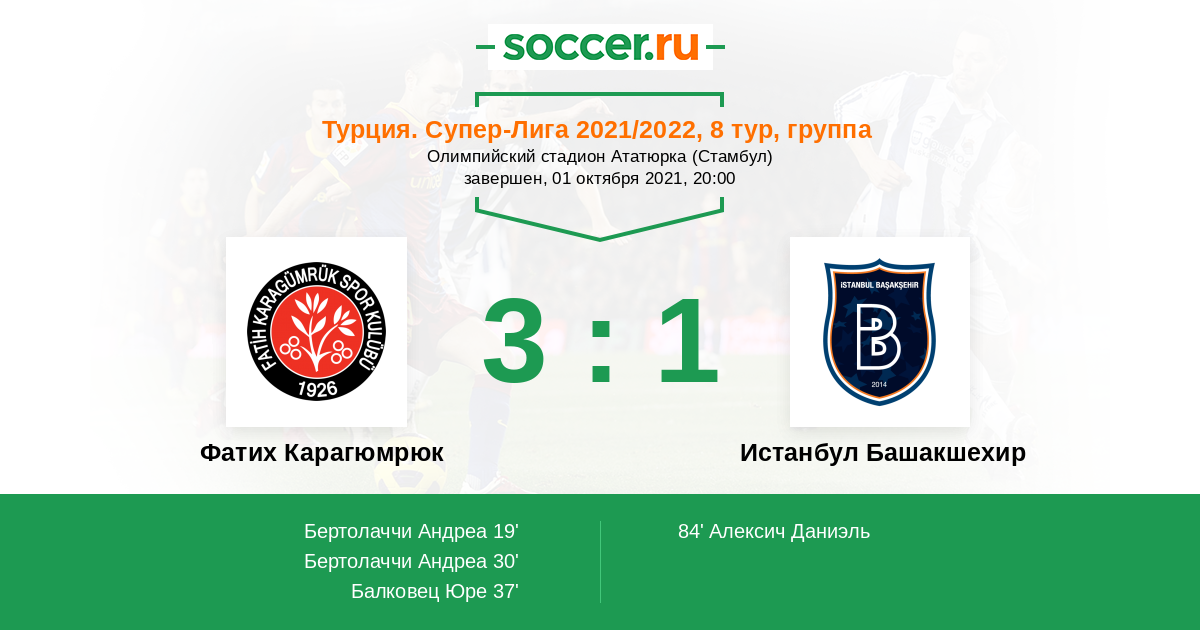 Фатих Карагюмрюк - Истанбул Башакшехир: обзор матча 1 октября 2021