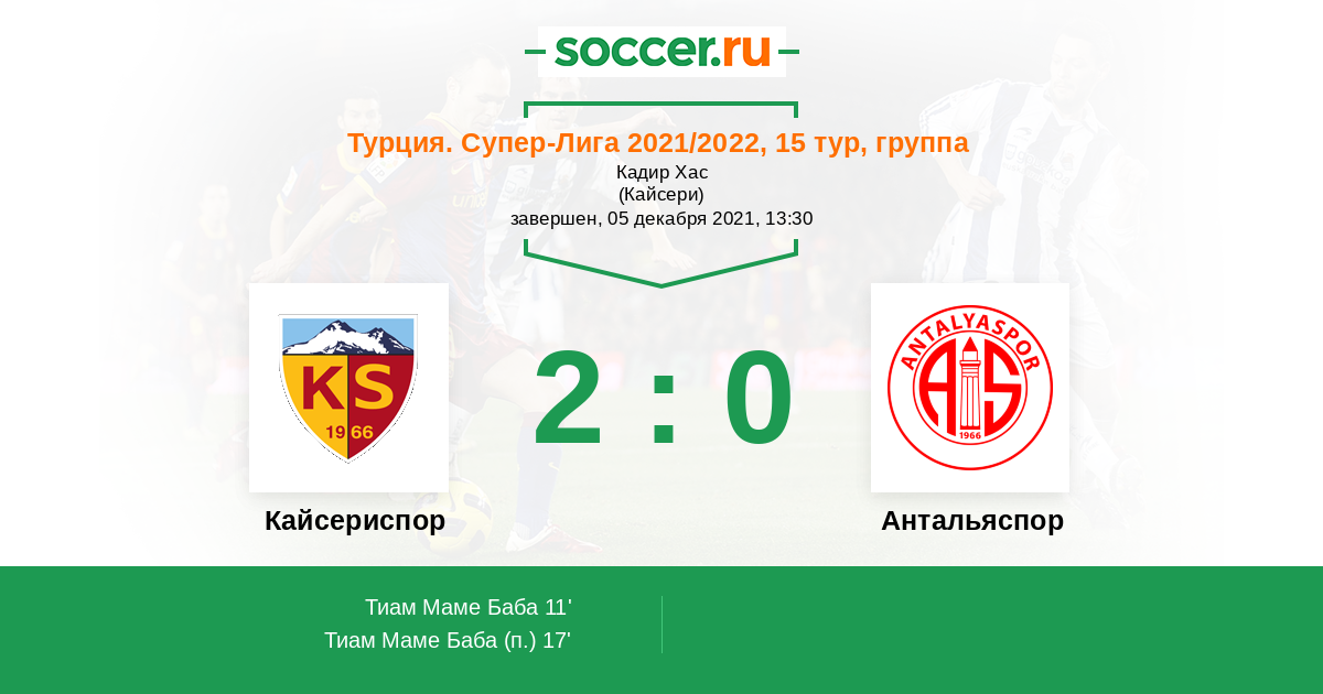 Кайсериспор - Антальяспор: обзор матча 5 декабря 2021