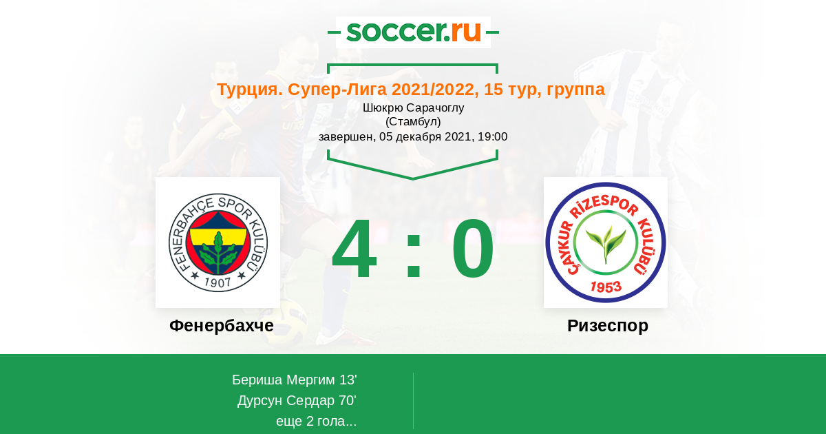 Фенербахче - Ризеспор: обзор матча 5 декабря 2021
