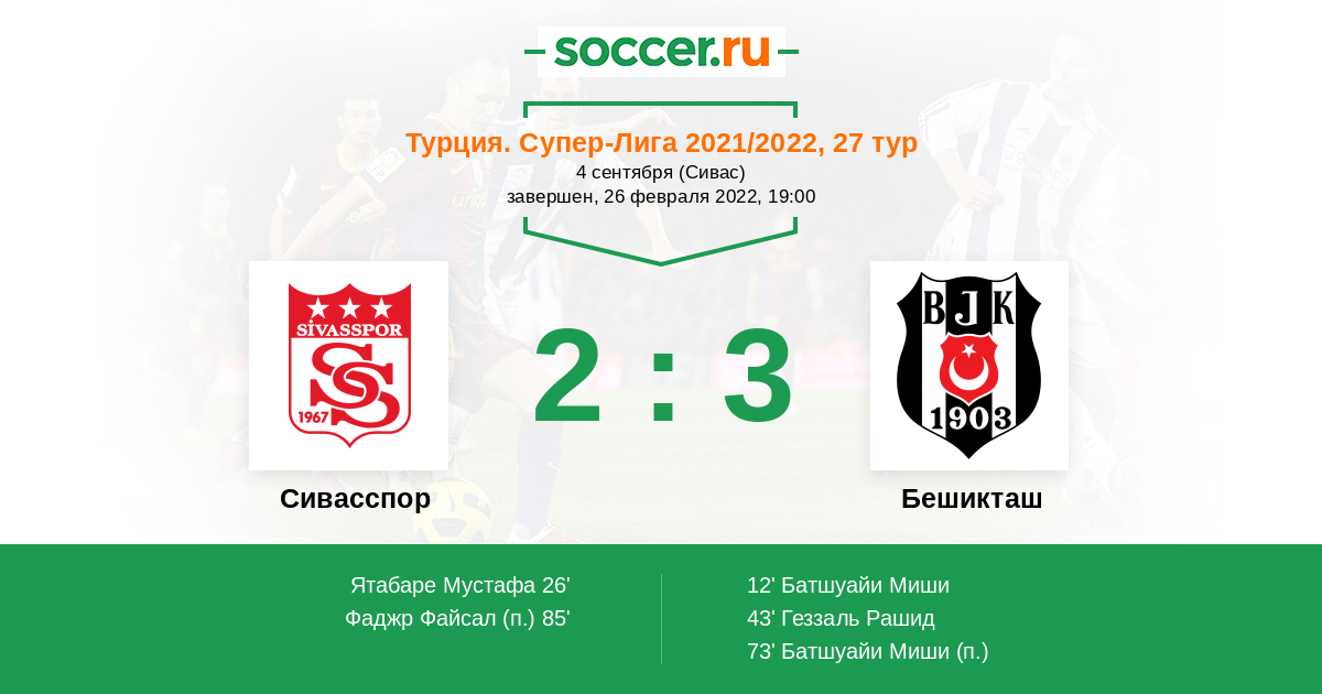 Сивасспор - Бешикташ: обзор матча 26 февраля 2022