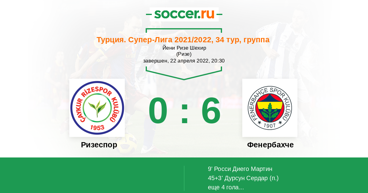Ризеспор - Фенербахче: обзор матча 22 апреля 2022