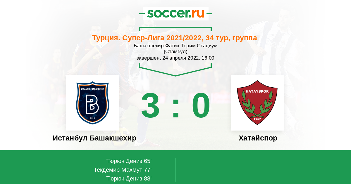 Истанбул Башакшехир - Хатайспор: обзор матча 24 апреля 2022