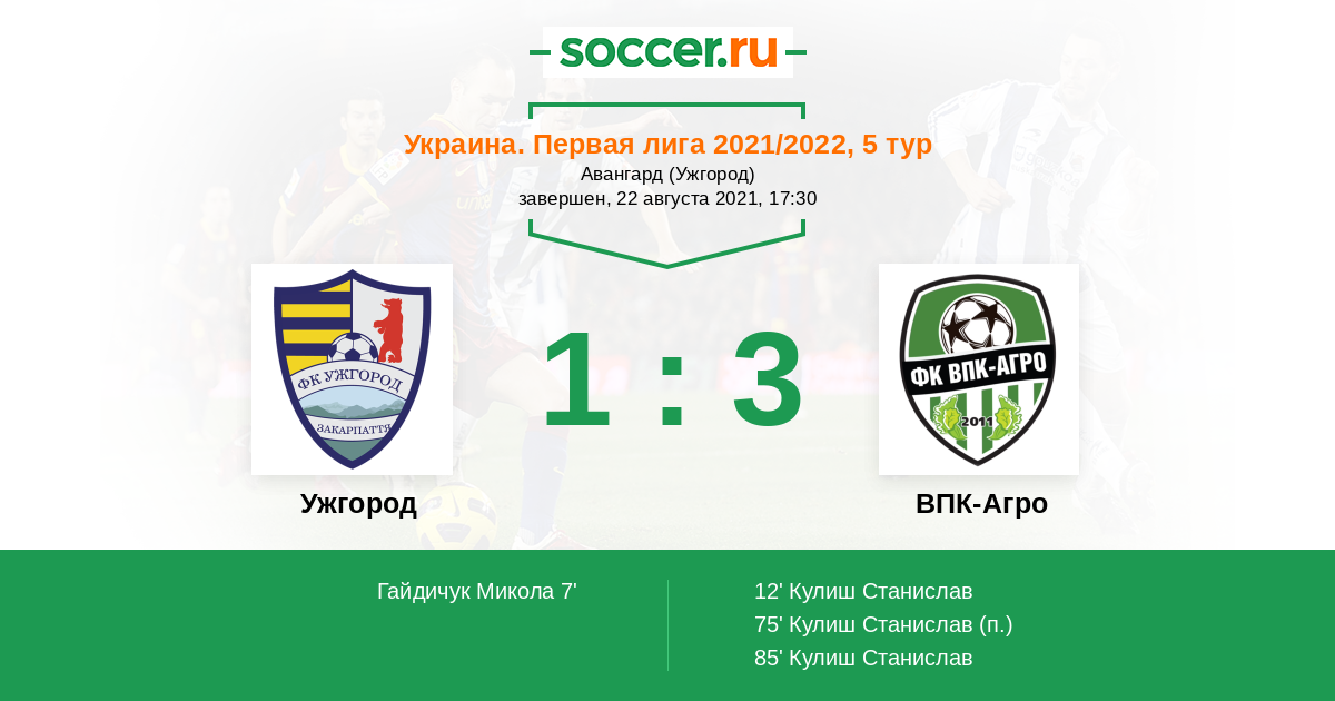 Ужгород - ВПК-Агро: обзор матча 22 августа 2021