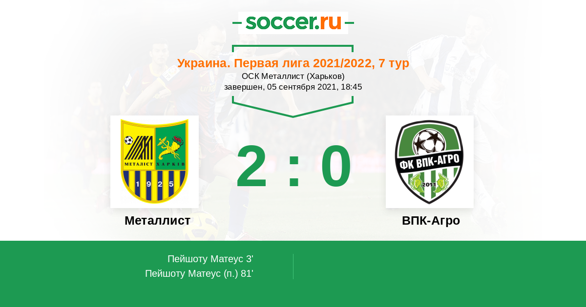 Металлист - ВПК-Агро: обзор матча 5 сентября 2021