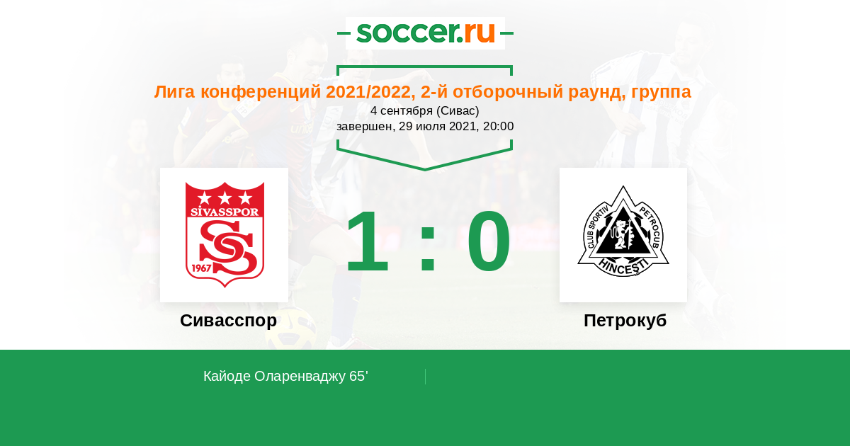 Сивасспор - Петрокуб: обзор матча 29 июля 2021
