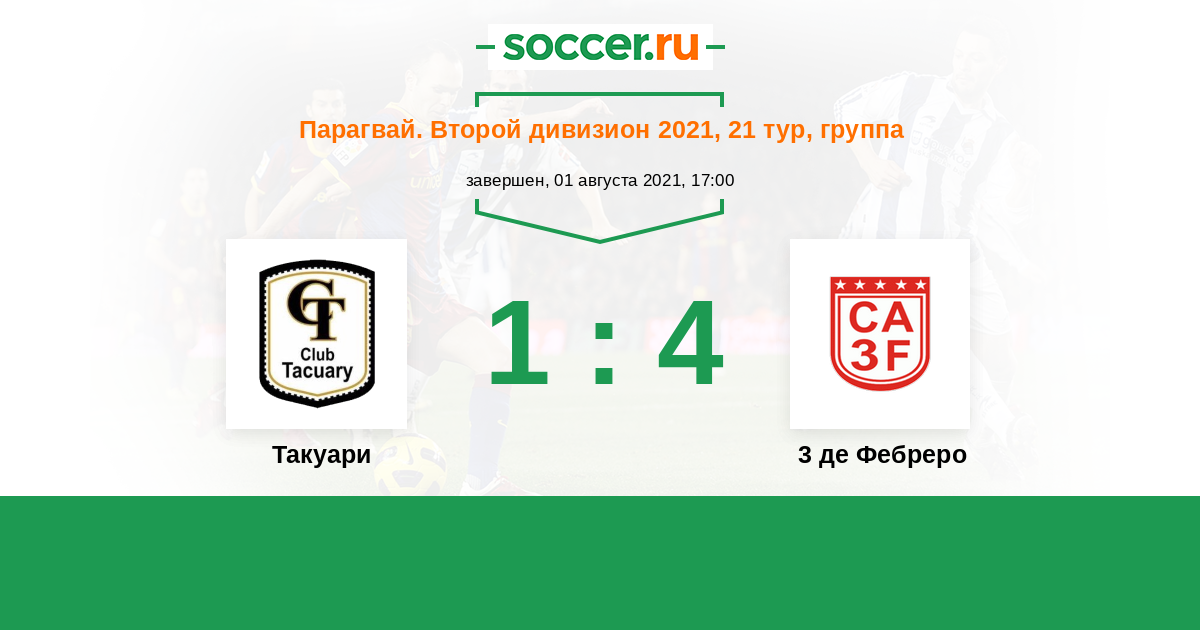 Такуари - 3 де Фебреро: обзор матча 1 августа 2021