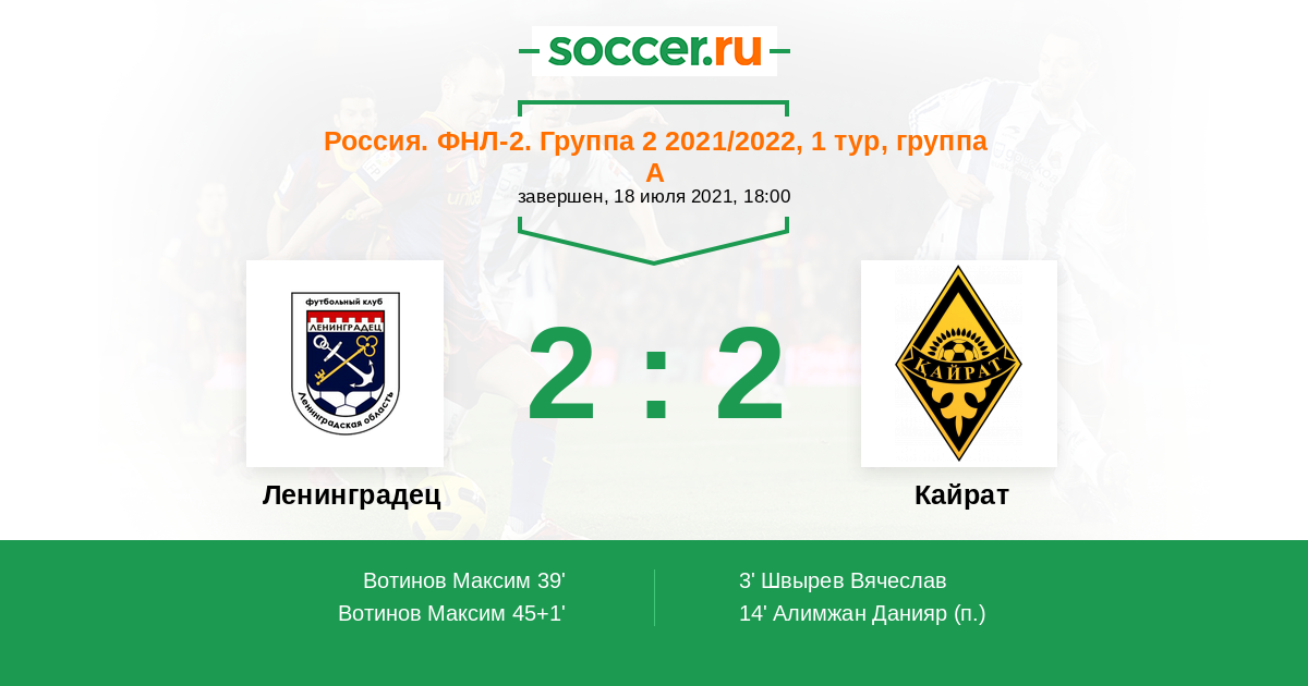 Ленинградец - Кайрат: обзор матча 18 июля 2021