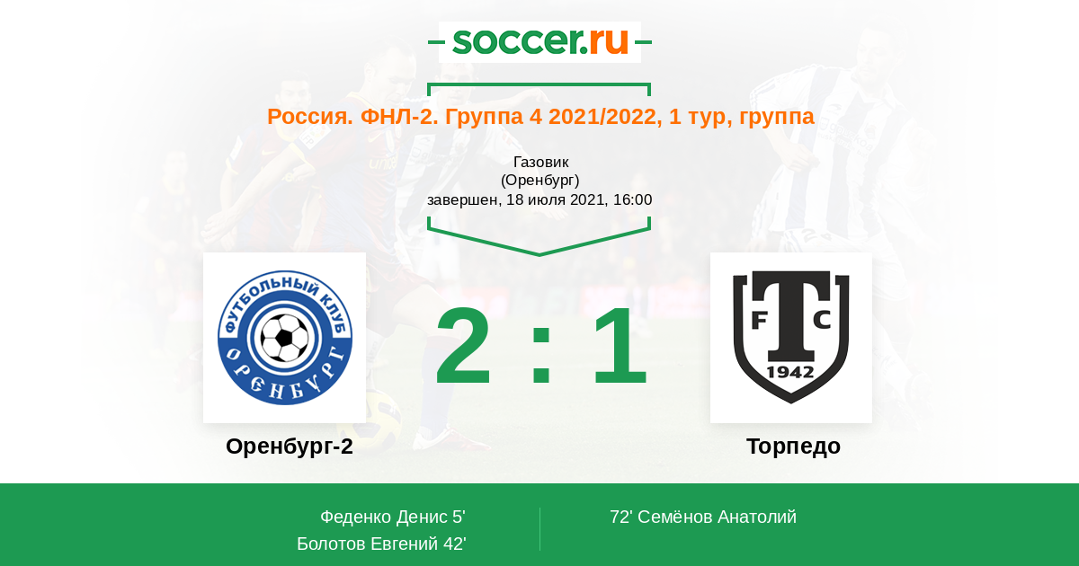Оренбург-2 - Торпедо: обзор матча 18 июля 2021