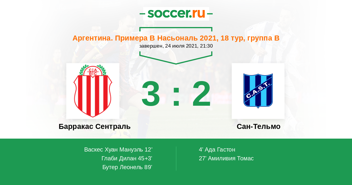 Барракас Сентраль - Сан-Тельмо: обзор матча 24 июля 2021