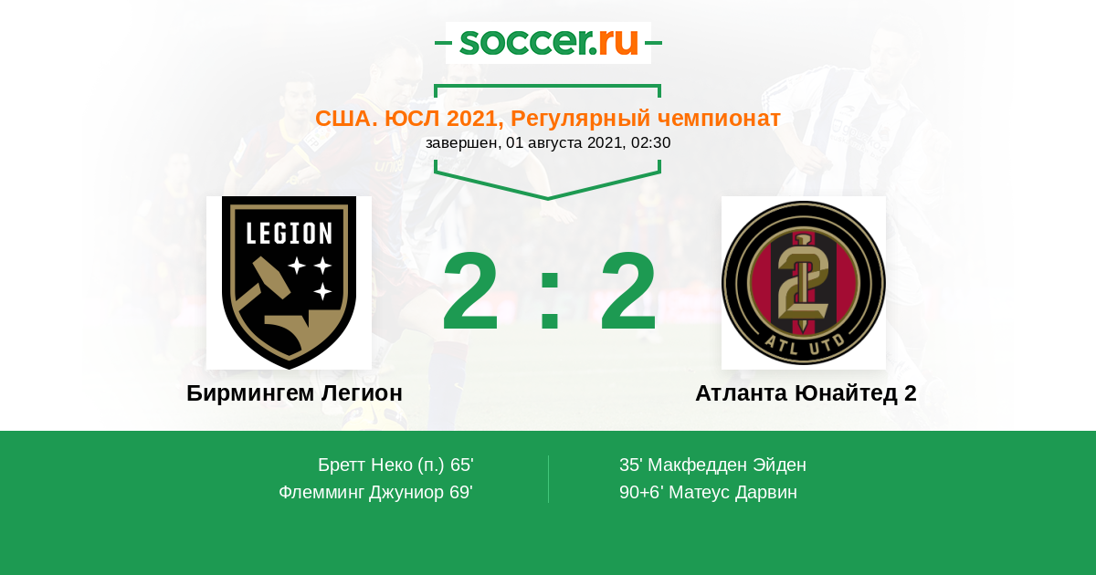 Бирмингем Легион - Атланта Юнайтед 2: обзор матча 1 августа 2021