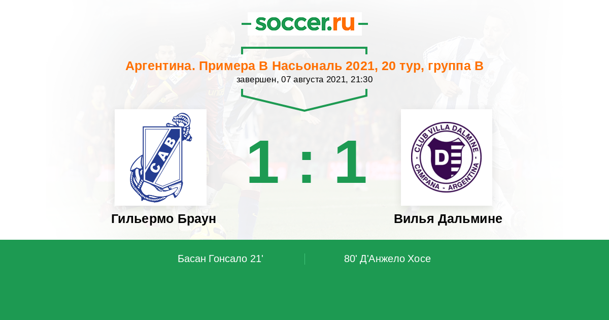 Гильермо Браун - Вилья Дальмине: обзор матча 7 августа 2021