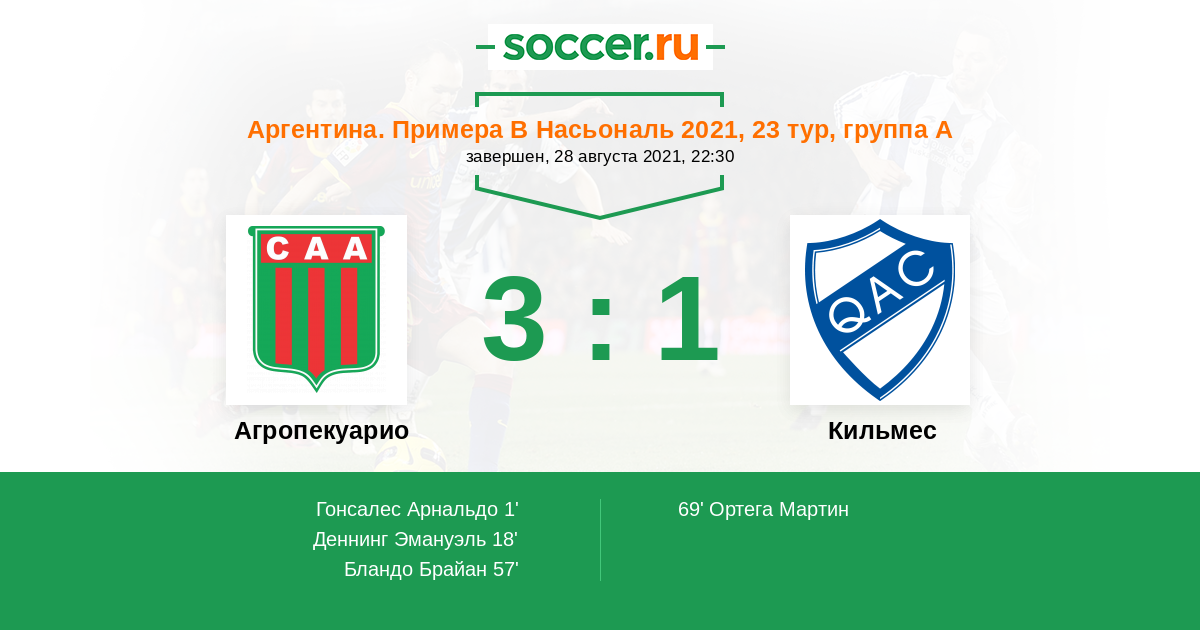Агропекуарио - Кильмес: обзор матча 28 августа 2021