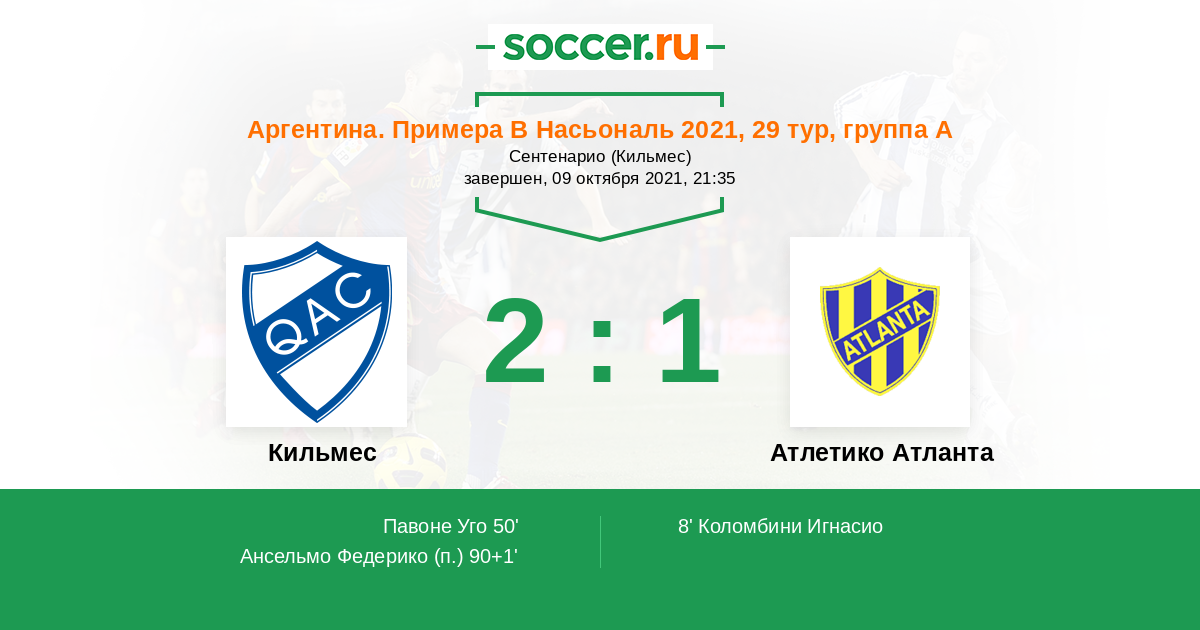 Кильмес - Атлетико Атланта: обзор матча 9 октября 2021