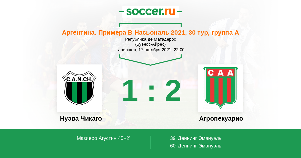 Нуэва Чикаго - Агропекуарио: обзор матча 17 октября 2021