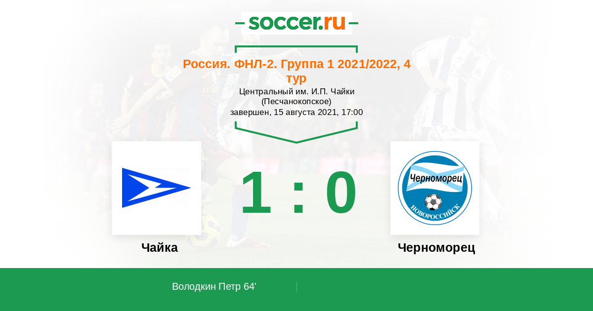 Чайка - Черноморец: обзор матча 15 августа 2021