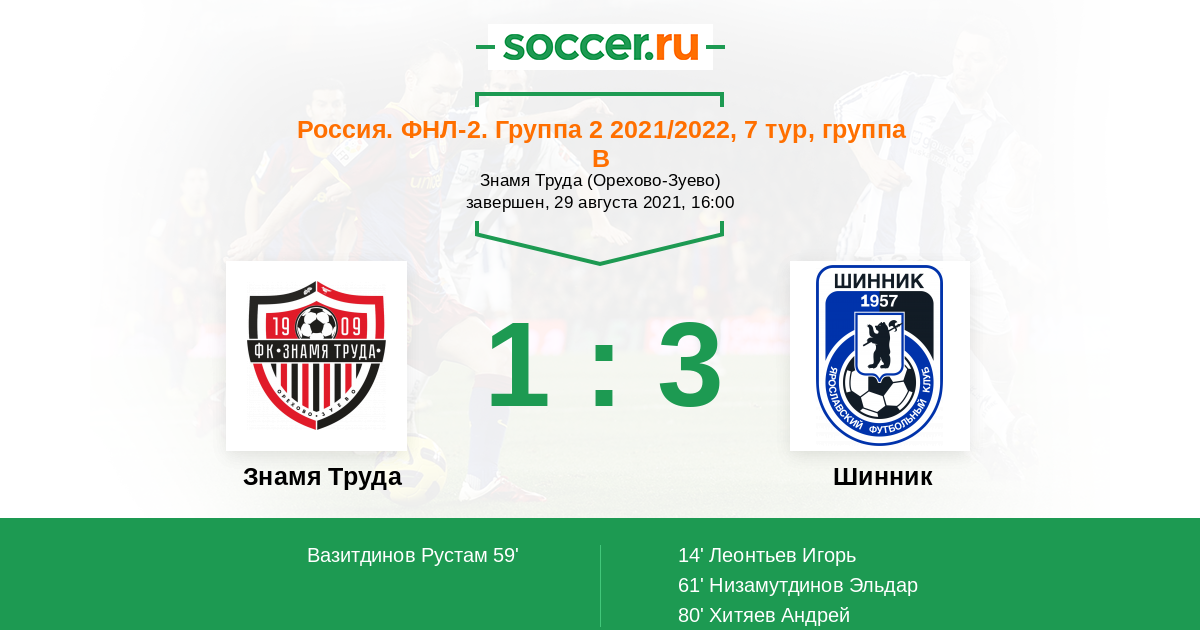 Знамя Труда - Шинник: обзор матча 29 августа 2021