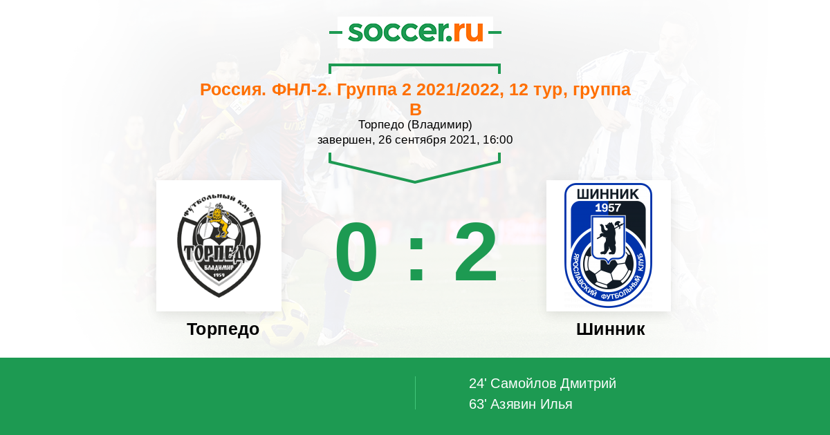 Торпедо - Шинник: обзор матча 26 сентября 2021