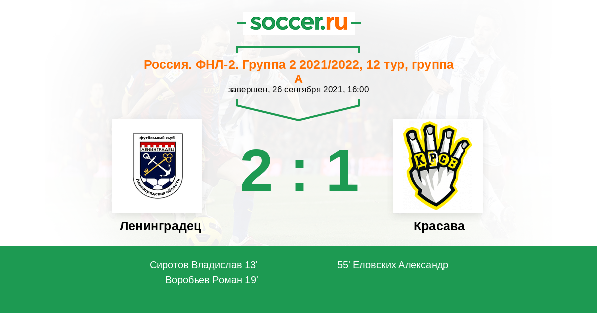 Ленинградец - Красава: обзор матча 26 сентября 2021