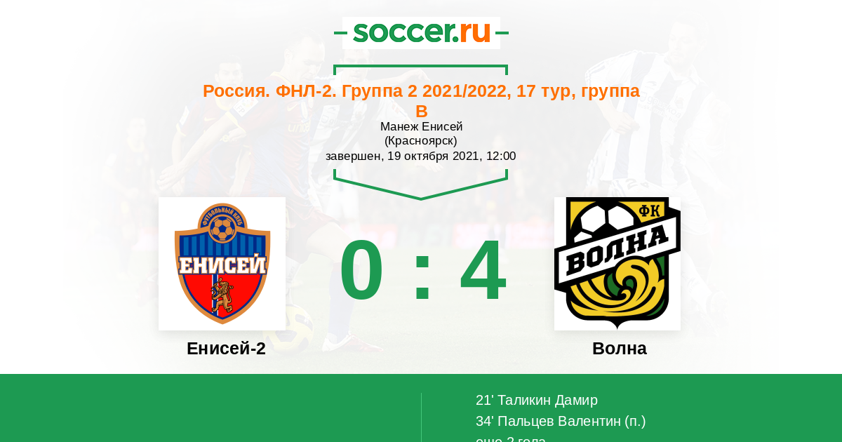 Енисей-2 - Волна: обзор матча 19 октября 2021