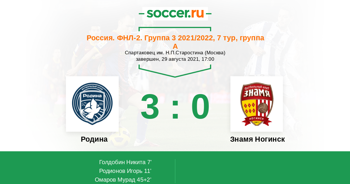 Родина - Знамя Ногинск: обзор матча 29 августа 2021
