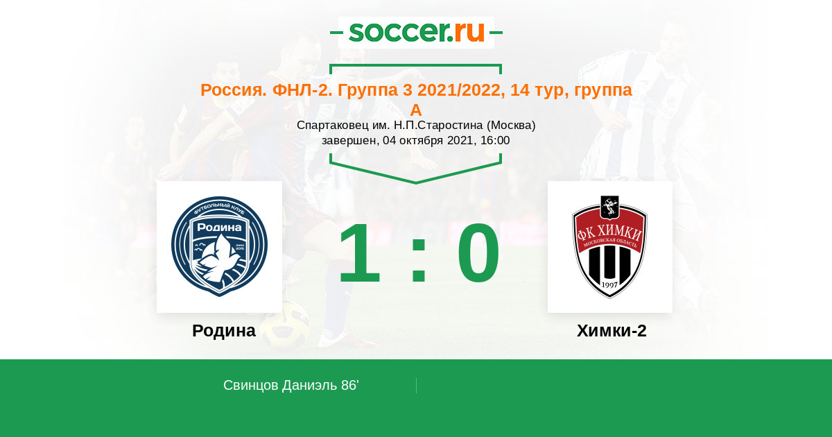 Родина - Химки-2: обзор матча 4 октября 2021