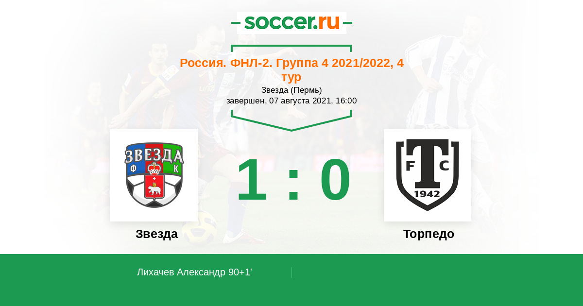 Звезда - Торпедо: обзор матча 7 августа 2021