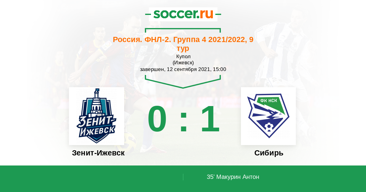 Зенит-Ижевск - Сибирь: обзор матча 12 сентября 2021