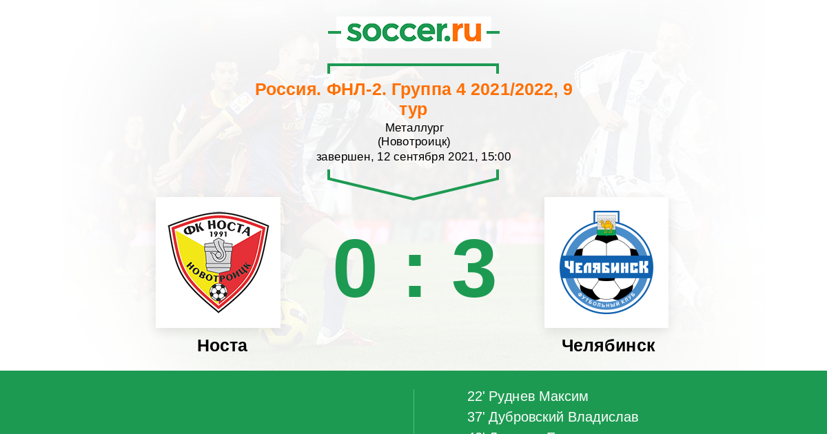 Носта - Челябинск: обзор матча 12 сентября 2021